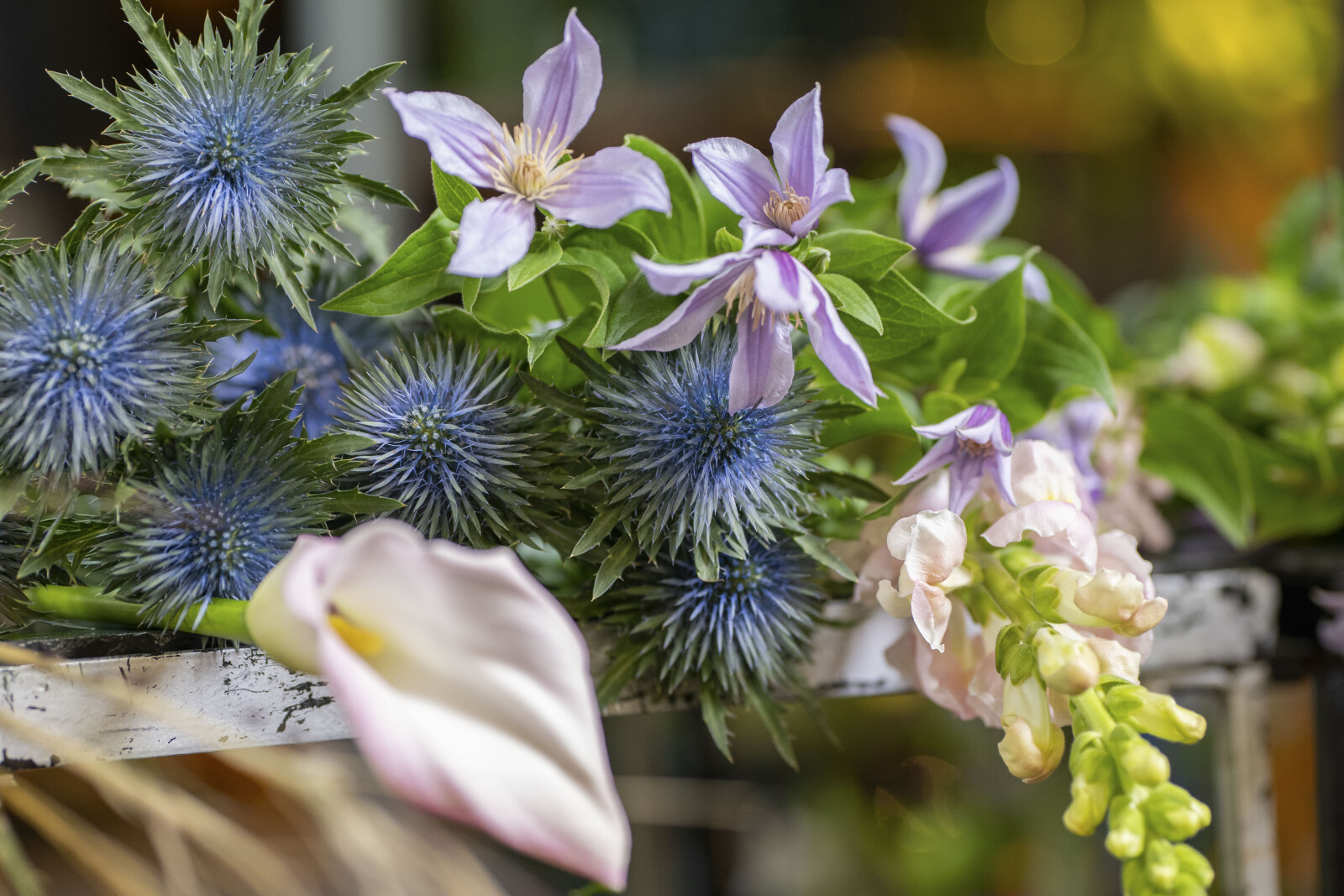 Eryngium fällt immer mit ihren stacheligen, kegelförmigen Blütenköpfen und ihren auffälligen blauen oder silbrigen Farbtönen auf. Das macht diese Blume zu einem echten Blickfang in einem Strauß!