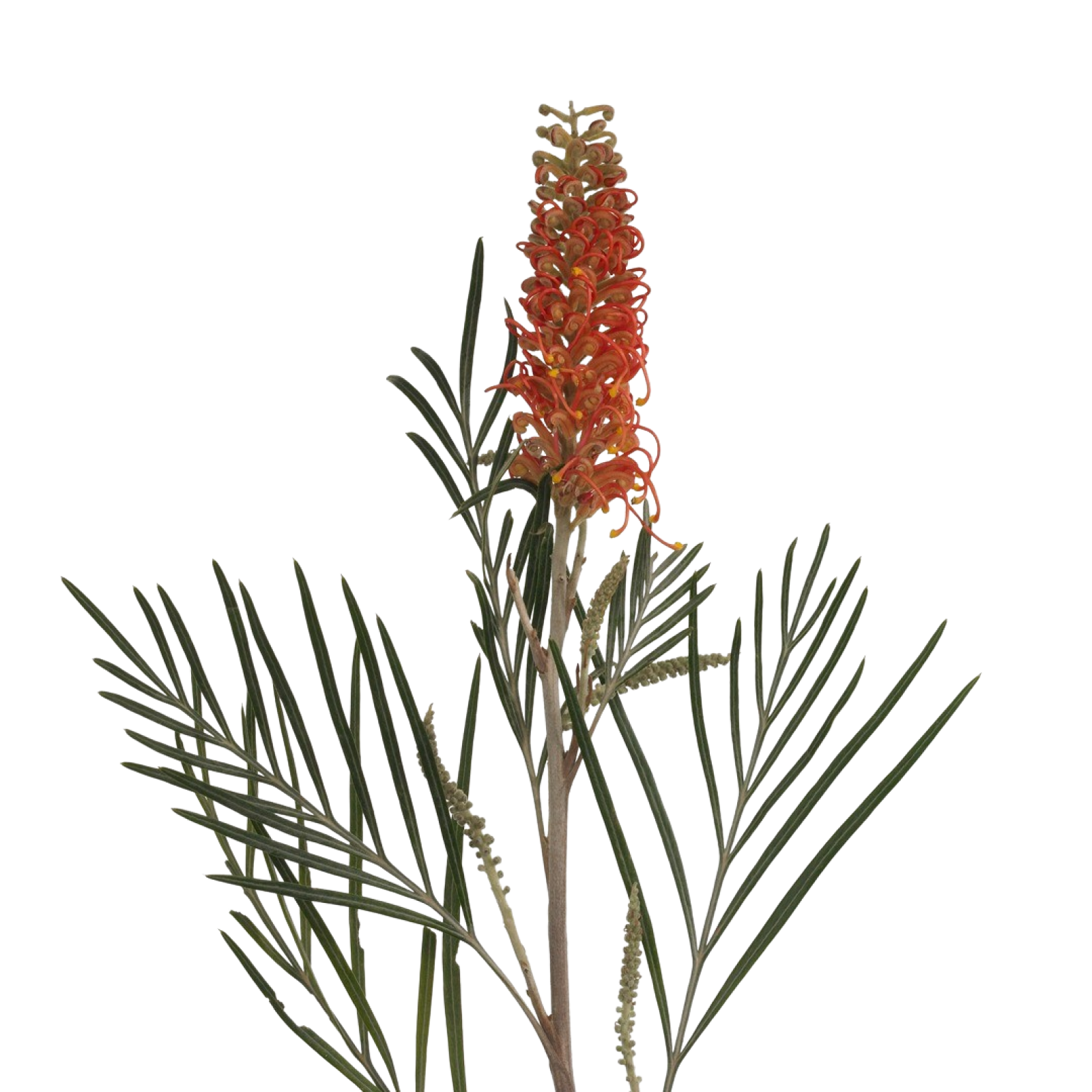 Die Grevillea zeichnet sich durch ihre einzigartige Blütenform und -struktur aus. Die Blüte besteht aus Büscheln von feinen, röhrenförmigen Blüten.