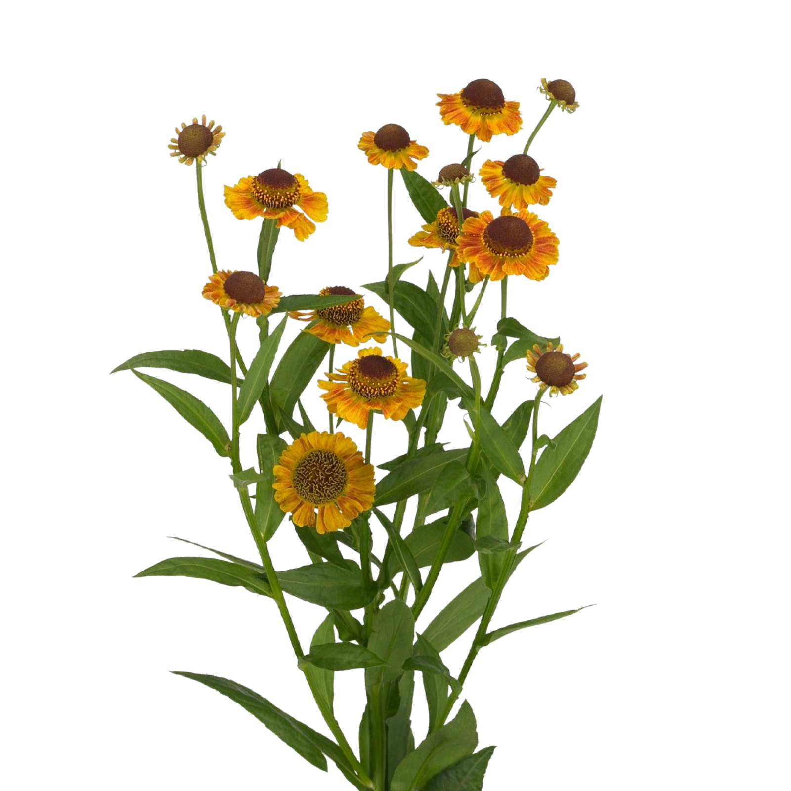 Die Helenium hat ein auffälliges Aussehen mit ihren Blütenköpfen, die aus einem zentralen Teil bestehen, der von Blütenblättern umgeben ist.