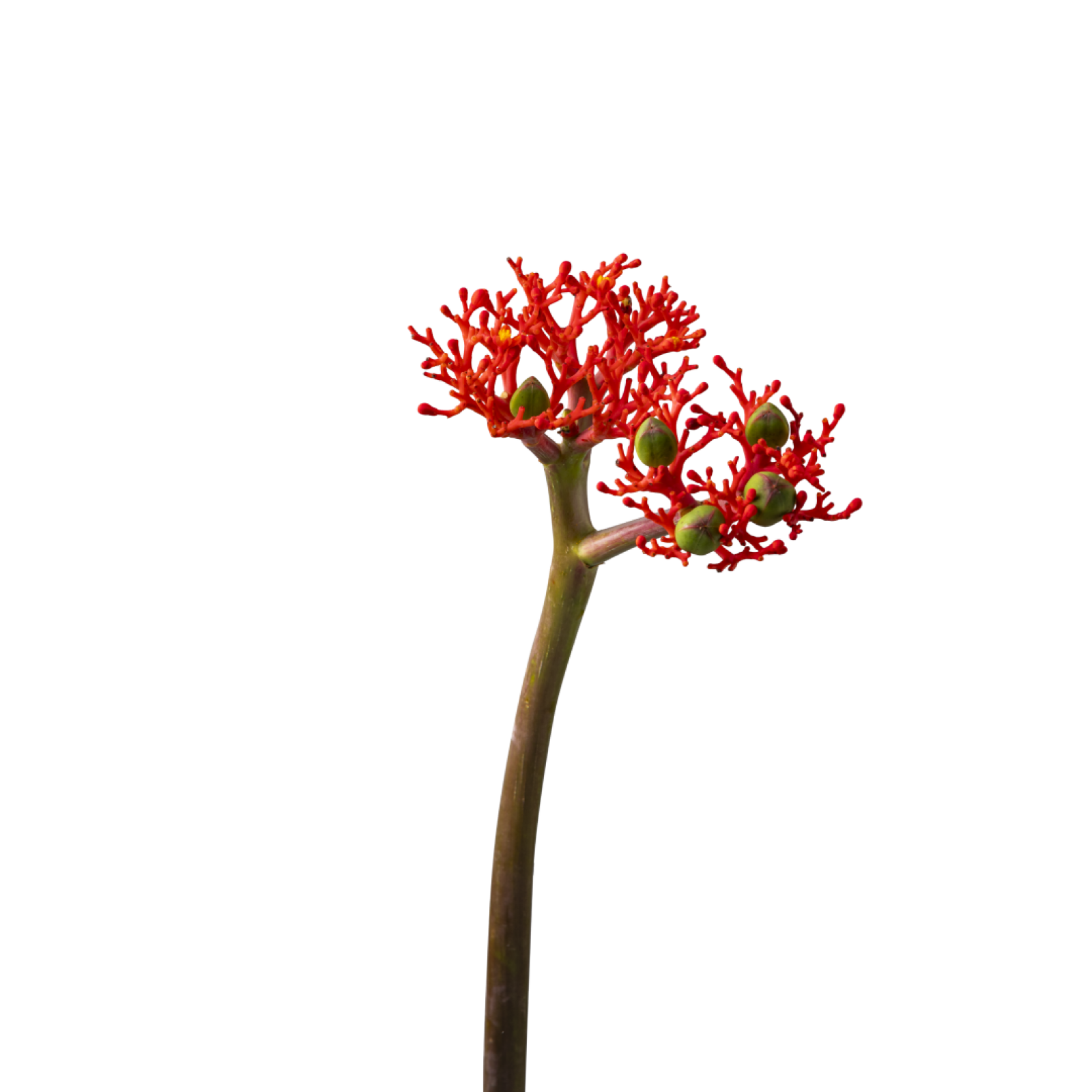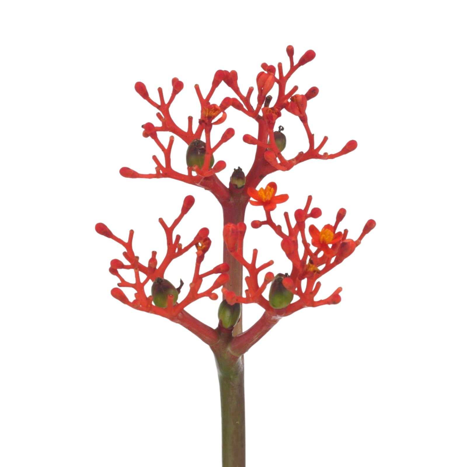 Wegen ihrer leuchtend roten Farbe symbolisiert die Jatropha Liebe, Leidenschaft und Vitalität.