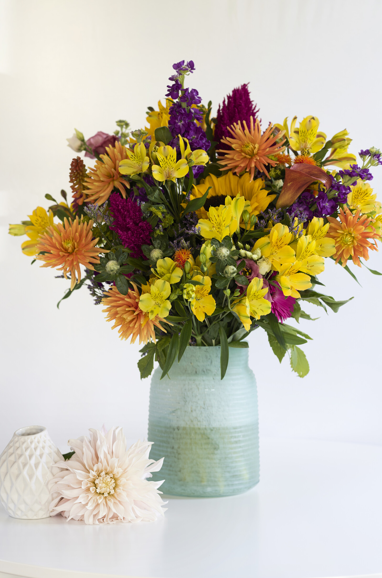 Die Kniphofia, auch Feuerpfeil genannt, ist sehr auffällig. Sie verleiht jedem Strauß ein exotisches Element und ist immer ein Blickfang in jedem Strauß.