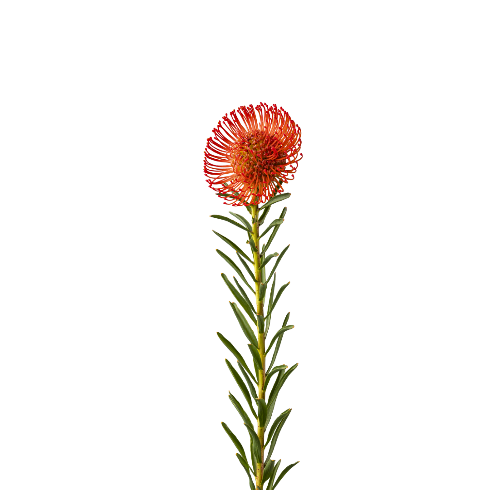 Die Blüten der Leucospermum sind auffällig und haben eine charakteristische Struktur, die einem Nadelkissen ähnelt. Sie haben meist röhrenförmige Blüten mit zahlreichen spitzen, steifen und farbenfrohen Teilen, die sie zu einem Blickfang in einem Blumenstrauß machen.