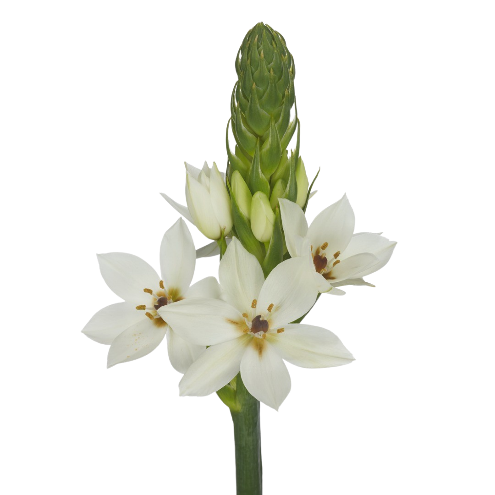 Die Ornithogalum ist hauptsächlich weiß mit einem Hauch von Grün in ihrem Herzen. Das macht die Blüte optisch attraktiv und zieht die Aufmerksamkeit auf sich.