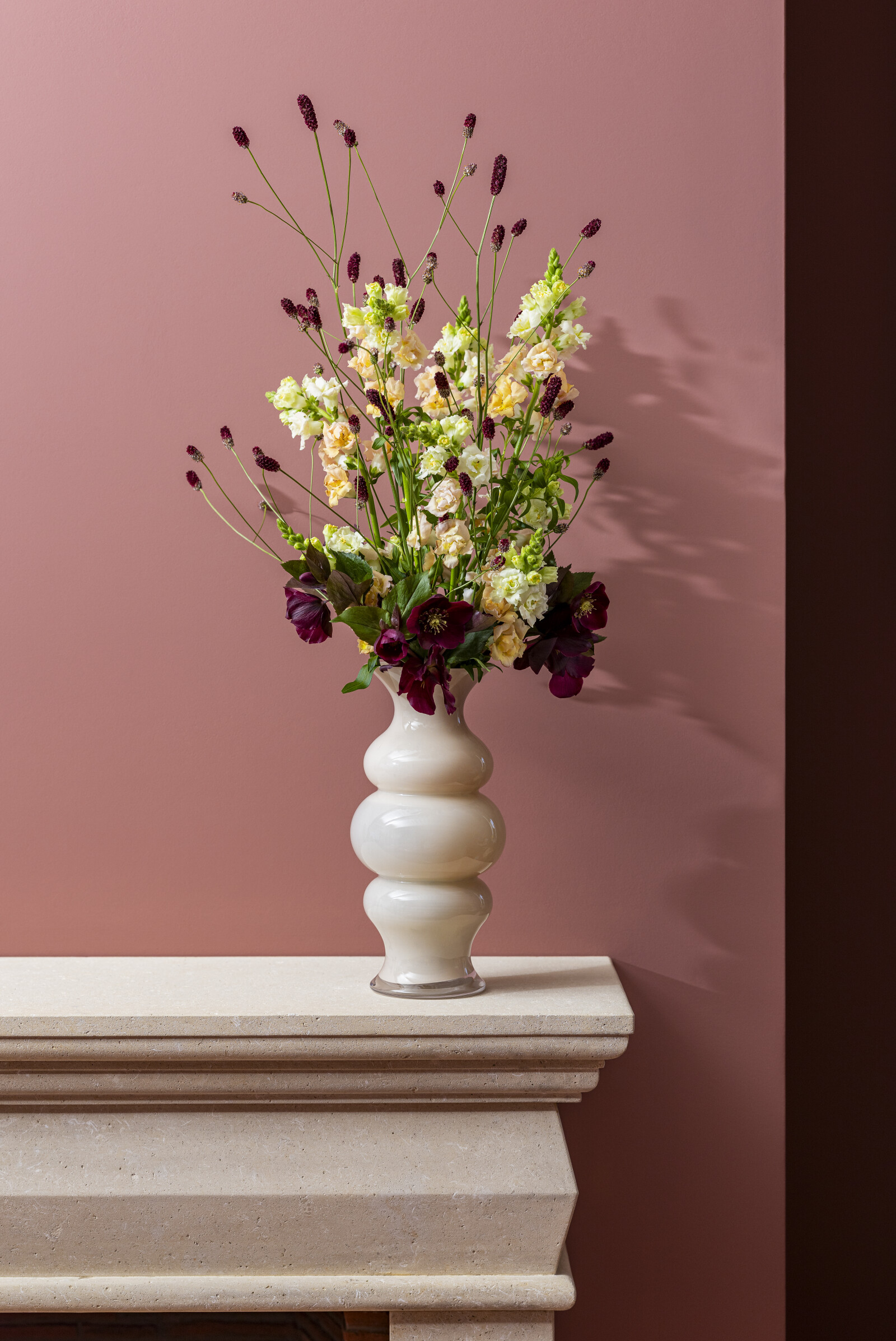 Die Rosa hat üppige Blütenblätter, die sich in mehreren Schichten öffnen und so eine volle und üppige Blüte bilden.