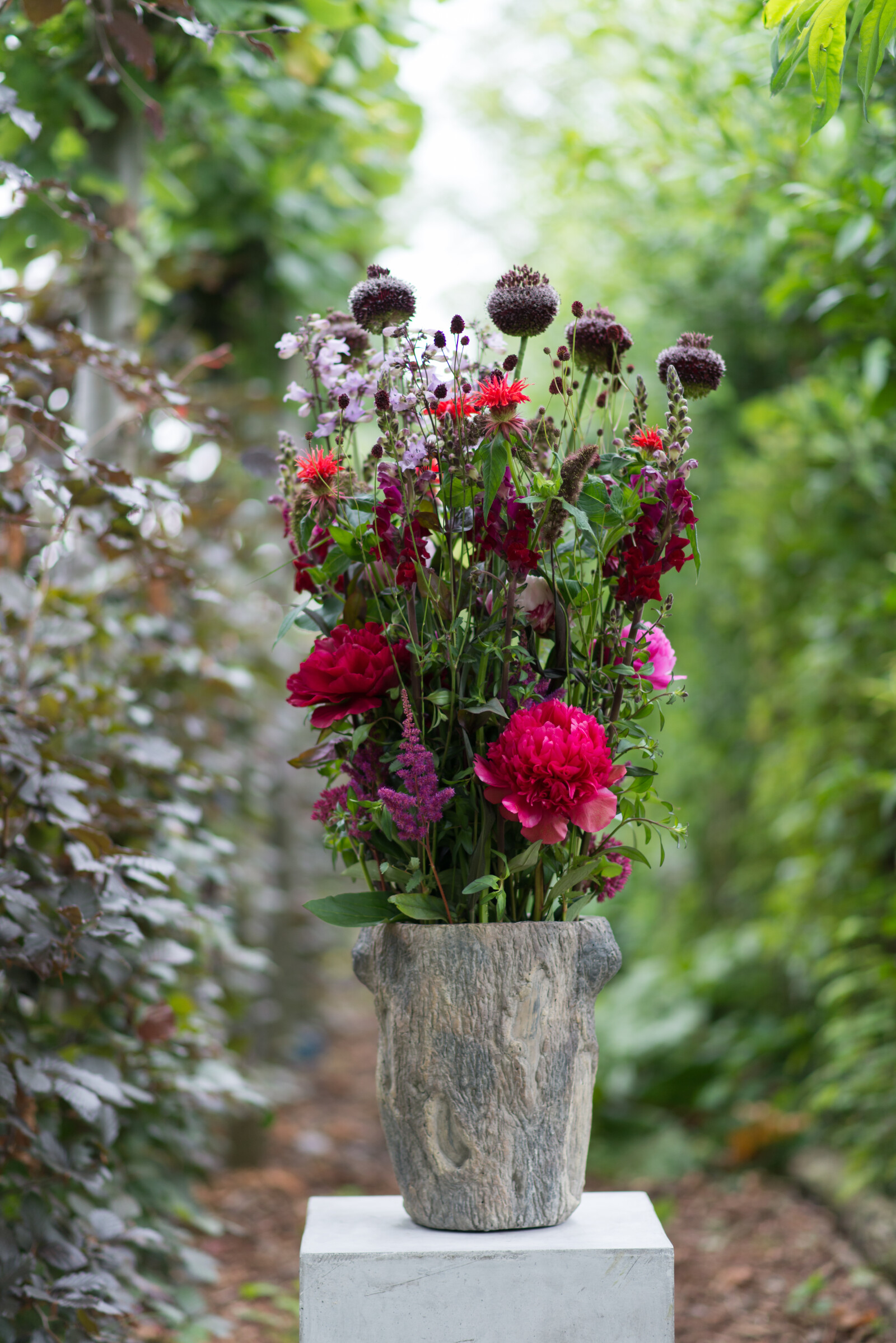Die Sanguisorba besteht aus vielen kleinen Blüten, die dicht beieinander stehen und ihr ein volles und üppiges Aussehen verleihen.
