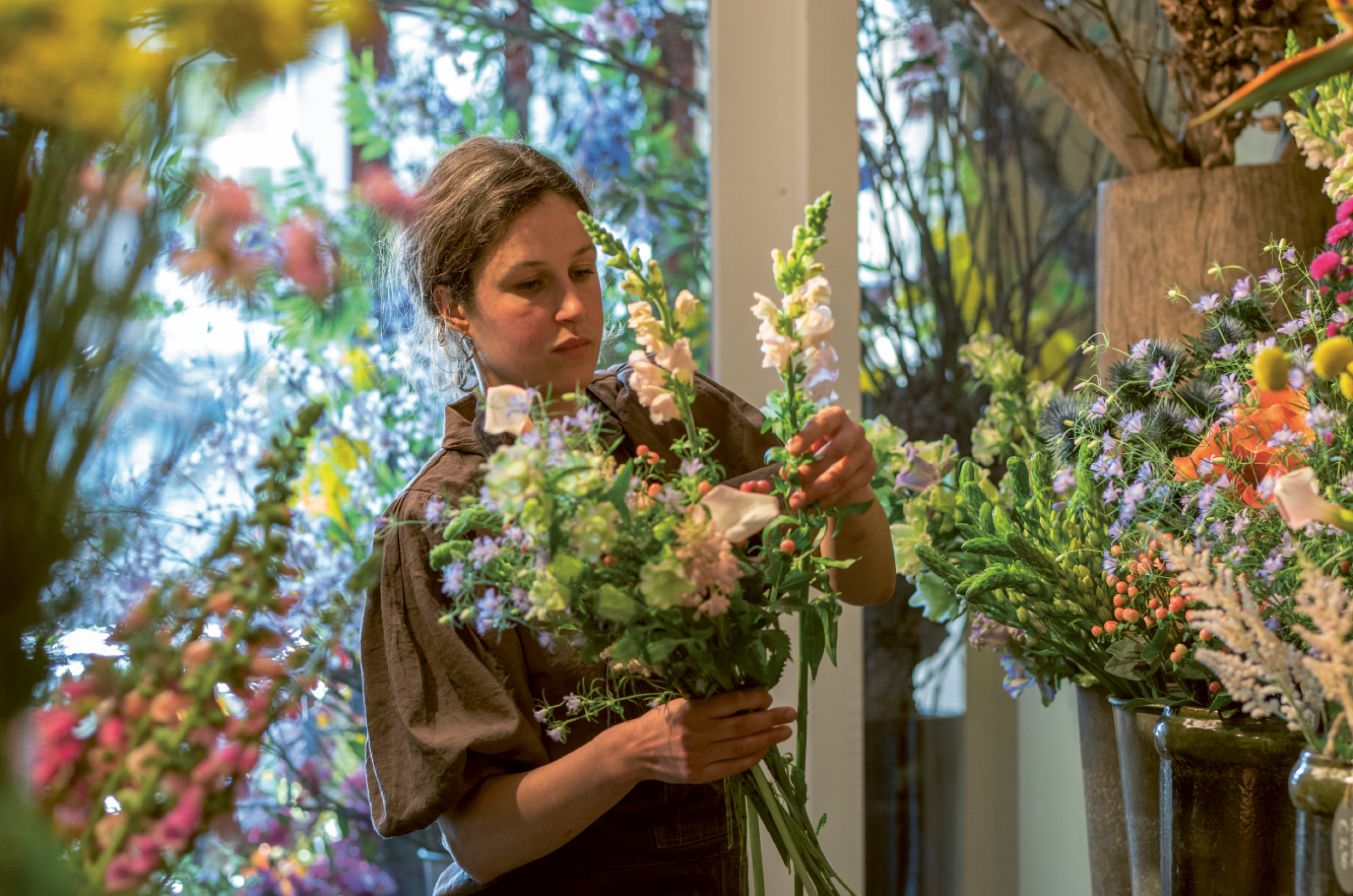 Roos van Unen, Inhaberin von ‚Hemelse Bloemen‘ im niederländischen Delft: „Mir macht es Spaß, jeden Tag wieder schöne Blumensträuße zu kreieren Außerdem bin ich Unternehmerin mit Leib und Seele.
